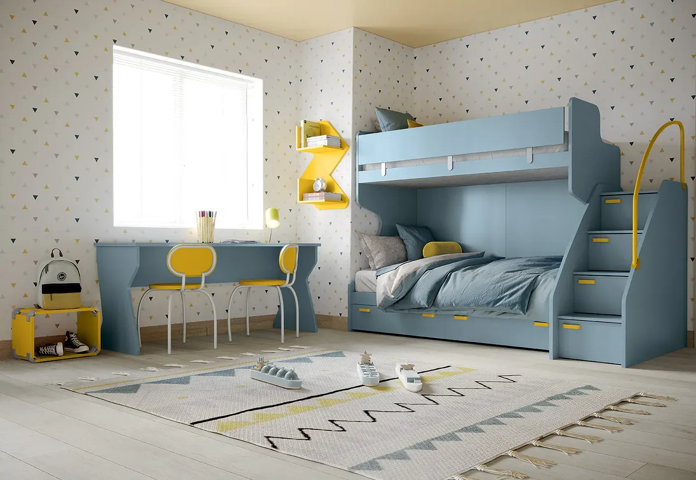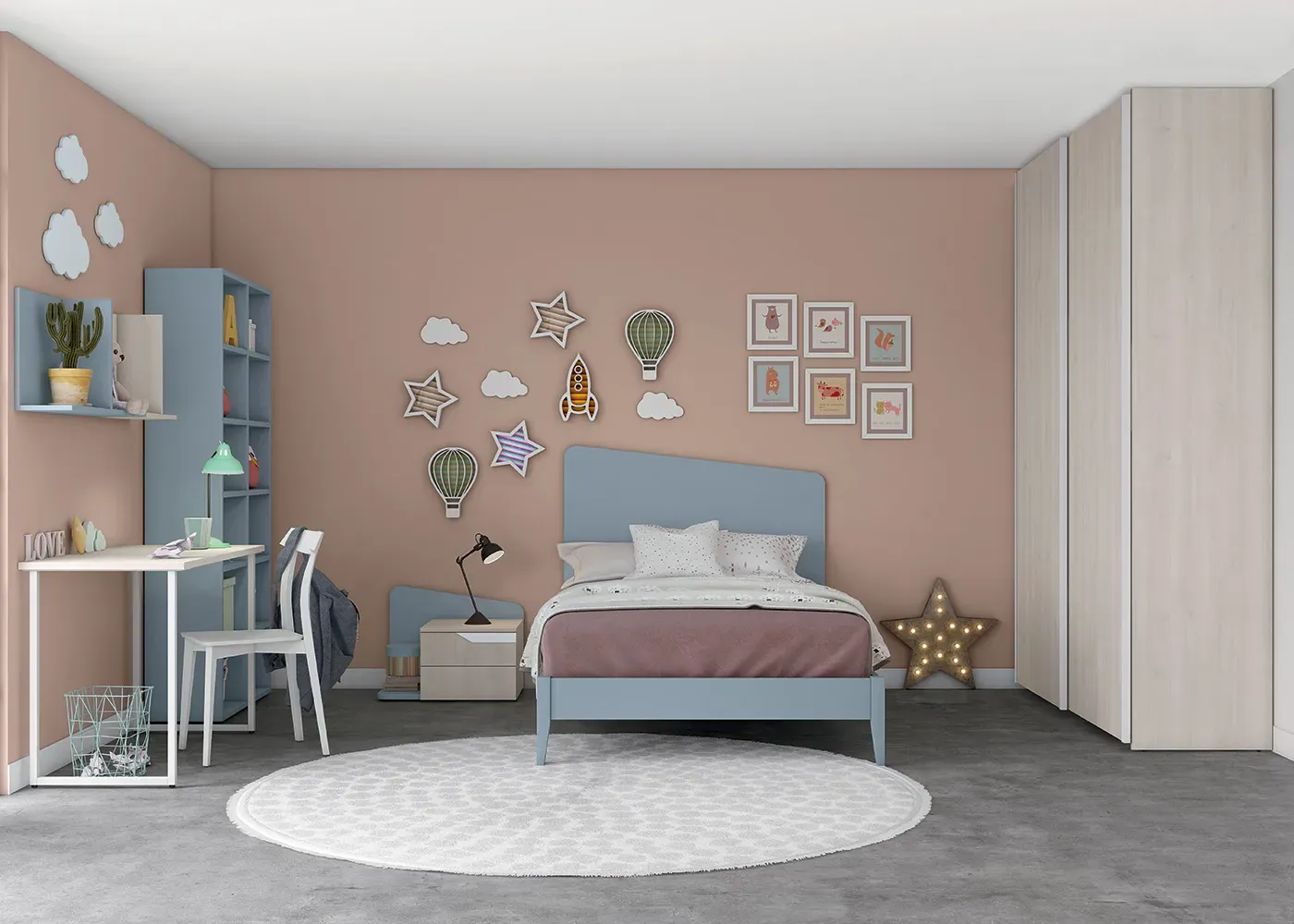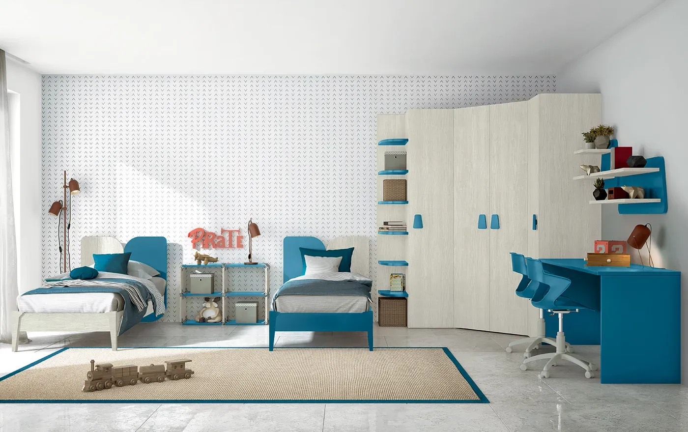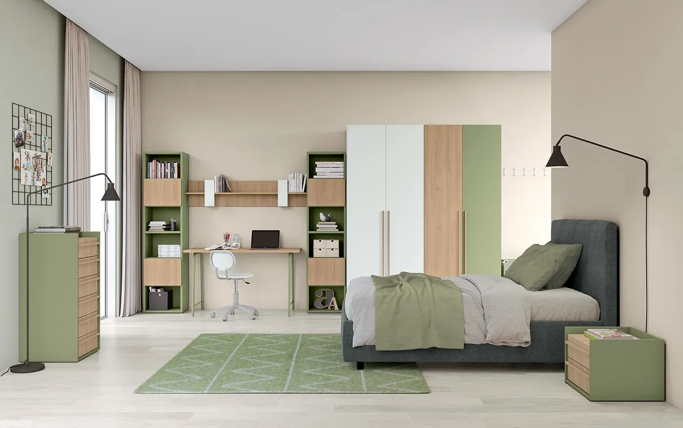 Potete scegliere tra un’ampia gamma di colori, forme e materiali, per realizzare la cameretta perfetta per vostro figlio, sia per i momenti di svago che per i momenti di studio.
